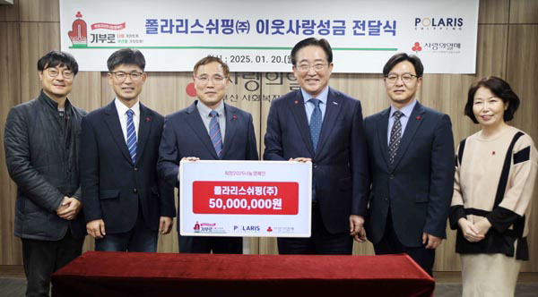 Polaris Shipping Co., Ltd. (CEO Han Hee-seung) visited the Busan Community Chest of Korea (Chairman Lee Soo-tae, Busan Fruit of Love) on the 20th to participate in the Hope 2025 Sharing Campaign and delivered 50 million won in love donations for neighbors (photo).